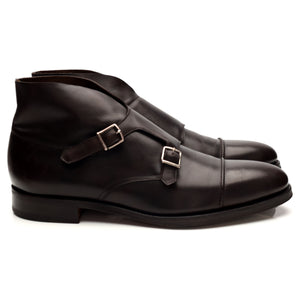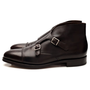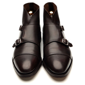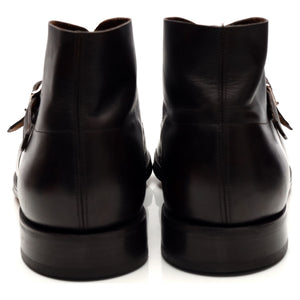 John Lobb 'William II Boot' double monk strap boots in dark brown calf. In excellent used condition, showing minor signs of wear.