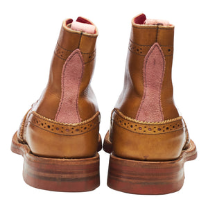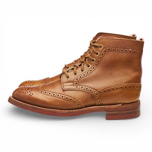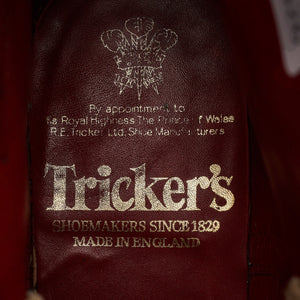 Tricker's brogue boots in brown calf. In excellent used condition, showing minor signs of wear.