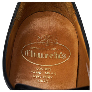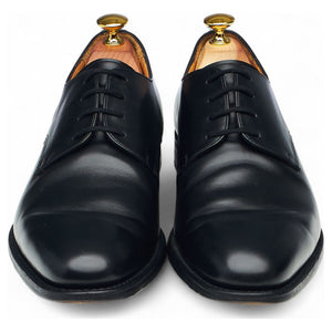 Church's 'Coram' plain toe derby in black calf. In excellent used condition, showing minor signs of wear.