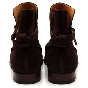 Crockett & Jones manufactured for Ralph Lauren jodhpur boots dark brown suede. In excellent used condition, showing minor signs of wear.