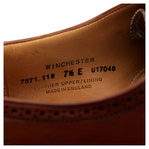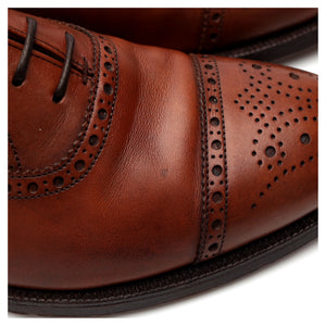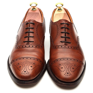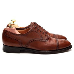Richelieus semi-brogues « Winchester » en veau marron, fabriqués par Crockett & Jones pour Shipton & Heneage. En très bon état d'usage, présentant des traces d'usure modérées et de légers plis sur l'empeigne.