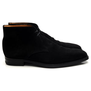 Crockett & Jones 'Tetbury' chukka boots in black repello suede. In excellent used condition, showing minor signs of wear.