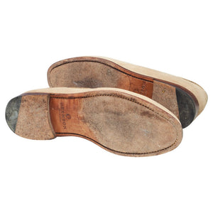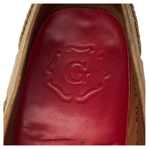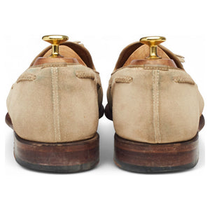 Grenson 'Scottie' tassel loafer in beige suede. In excellent used condition, with minor signs of wear.