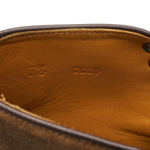 Viberg 'Halkett' cap toe Boots in tan brown suede. In excellent used condition, showing minor signs of wear.
