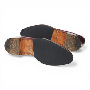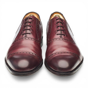 Cheaney 'Fenchurch' U-throat oxford semi brogues in burgundy calf. In excellent used condition, showing minor signs of wear.