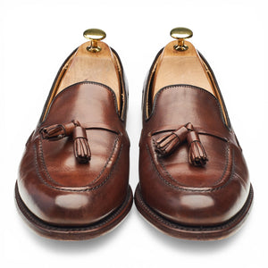 Loake 'Utah' tassel loafers in brown calf. In excellent used condition, showing minor signs of wear.