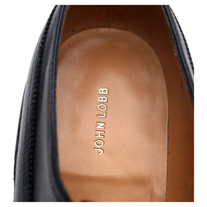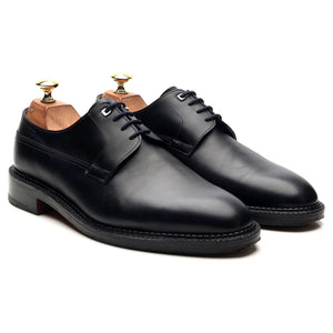 Derby à bout uni « Croft » de John Lobb en veau grainé caviar bleu marine. En excellent état.