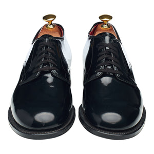 Alden 'N4405' plain toe derby in black patent leather. In excellent condition.
