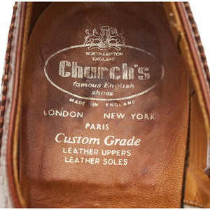 Church's 'Chetwynd' oxford brogue in tan brown calf. In excellent used condition, showing minor signs of wear and light creasing across the vamps.
