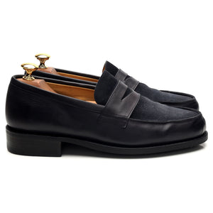 Paraboot 'Dax' loafer in navy blue calf and navy blue suede. In excellent used condition, showing minor signs of wear.