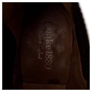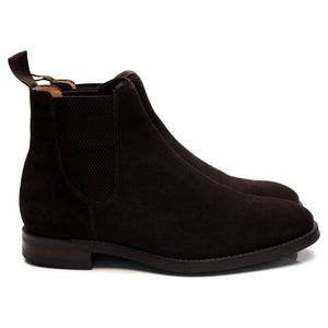 Loake 1880 'Chatsworth' Chelsea boots in dark brown suede. In excellent used condition, showing minor signs of wear.