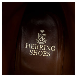 Herring split toe apron boots in brown waxy calf. In excellent used condition, showing minor signs of wear.