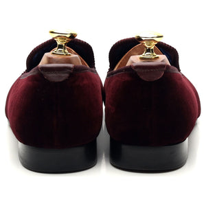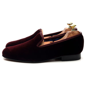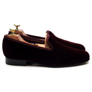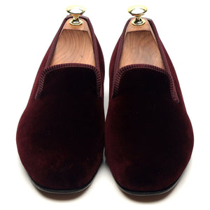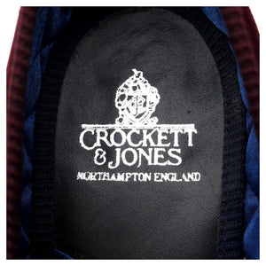 Chaussons « Albert » Crockett & Jones en velours bordeaux. En excellent état d'usage.