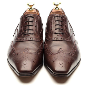 Richelieus Santoni en veau marron foncé. En excellent état d'usage, avec de légères traces d'usure.