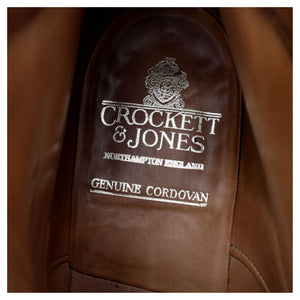 Bottes à bout rapporté « Harlech » de Crockett & Jones en cuir de veau marron foncé Whiskey de Horween. En excellent état d'usage, présentant de légères traces d'usure.