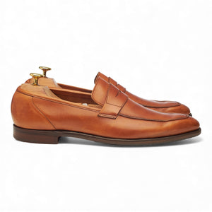 George Cleverley 'George' penny loafers in tan brown calf. In excellent used condition, with minor signs of wear.