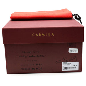 Carmina '80802' driving loafers in 'chestnut' dark brown suede.