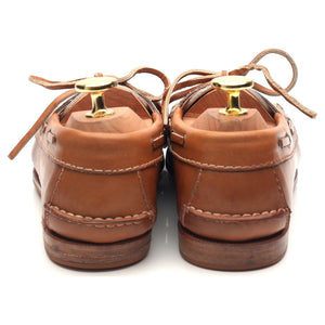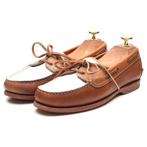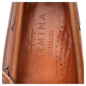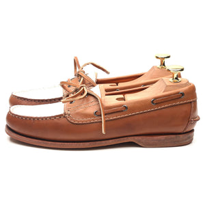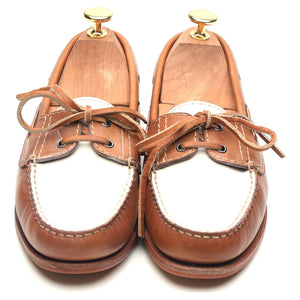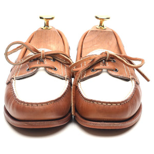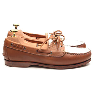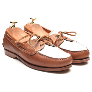 Chaussures bateau Carmina pour femme en cuir de veau marron et blanc. En excellent état d'usage.