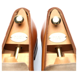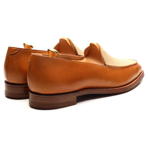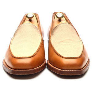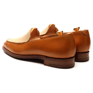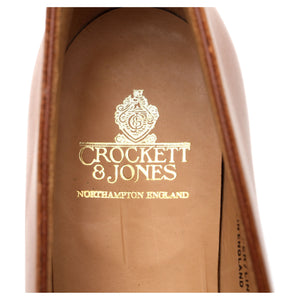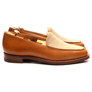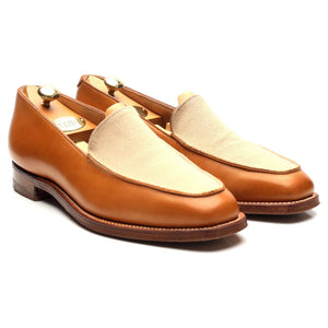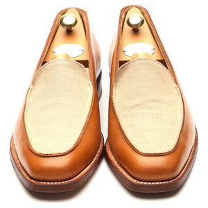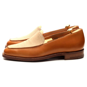 Mocassins « Fulmer » de Crockett & Jones en cuir de veau marron et toile beige. En excellent état d'usage, présentant de légères traces d'usure.