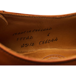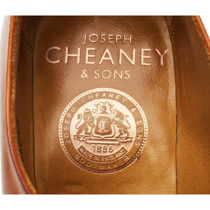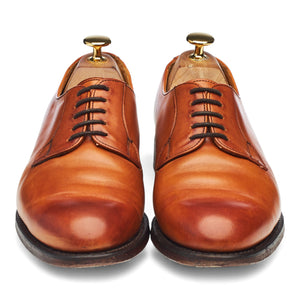 Cheaney women's plain toe derby in tan brown calf. In excellent used condition, showing minor signs of wear.