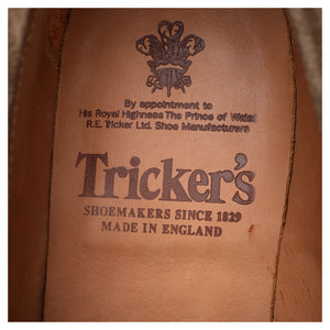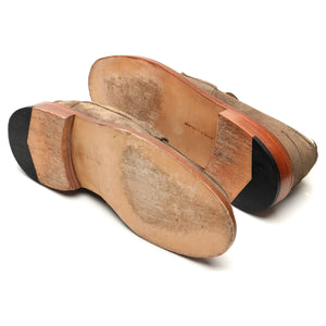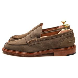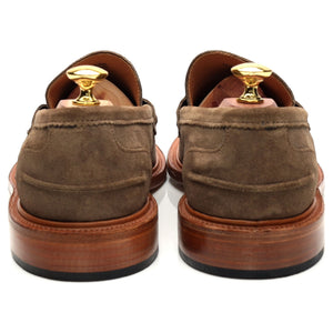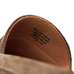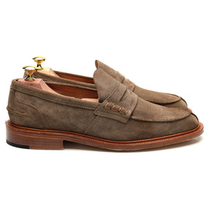 Mocassins « James » à bout fendu de Tricker en daim repello Visone marron pierre. En excellent état d'usage, présentant de légères traces d'usure.