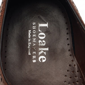 Loake 'Pembroke' oxford, with broguing, in Mahogany tan brown calf. In excellent used condition, showing minor signs of wear.