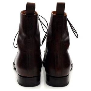 Carlos Santos 'Stallone 8866' cap toe derby boots in dark brown grain calf. In excellent used condition, showing minor signs of wear.
