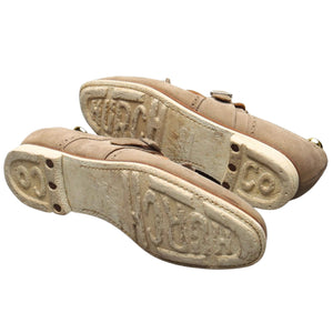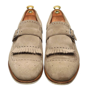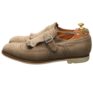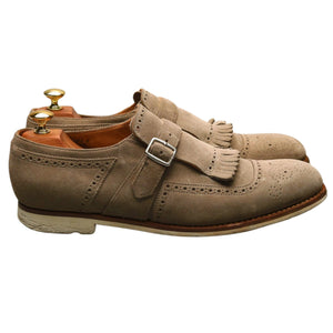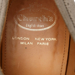 Chaussures à boucle Church's « Shanghai » en daim couleur pierre. En excellent état d'usage, présentant de légères traces d'usure.