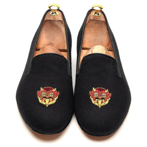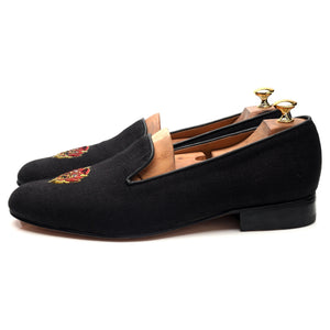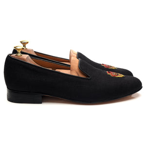 Arthur Sleep 'Albert' embroidered slippers in black canvas.