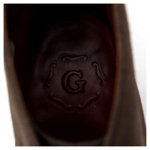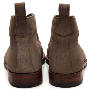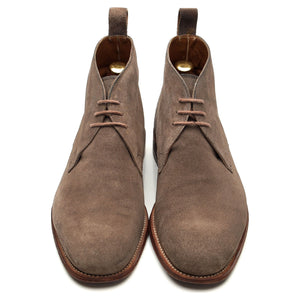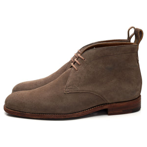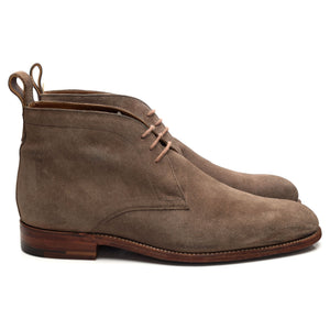 Grenson's 'Marcus' chukka boots in almond light brown suede. In excellent used condition, showing minor signs of wear.