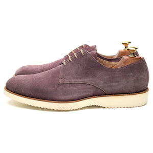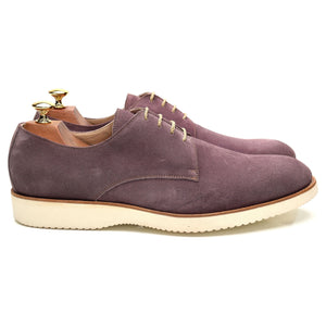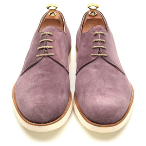 Derby Cabasso à bout uni en daim violet. En excellent état d'usage, présentant de légères traces d'usure.