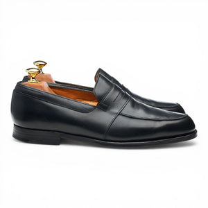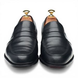 John Lobb 'Sandown' penny loafers in black calf. In excellent used condition, showing minor signs of wear.