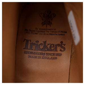 Bottes de singe de Tricker en daim marron tabac. En excellent état d'usage, présentant de légères traces d'usure.