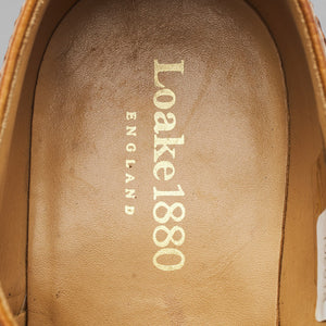 Loake 1880 'Badminton 2' wingtip derby brogues in tan brown grain calf. In excellent used condition, showing minor signs of wear.