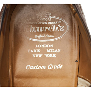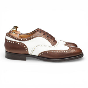Church's 'Sidford' oxford spectator brogues in brown and white calf. In excellent used condition, showing minor signs of wear.