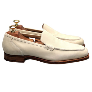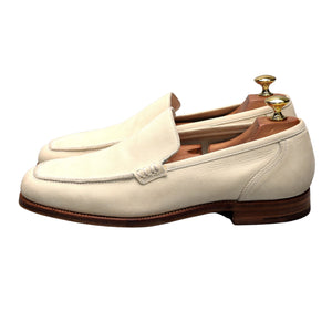 Crockett & Jones 'Kent' unlined loafer in white nubuck. In excellent used condition, showing minor signs of wear.