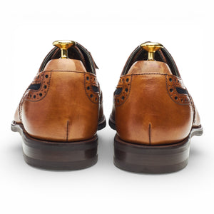 Loake Design 'Kerridge' oxford spectator brogues in tan brown calf and navy blue suede.