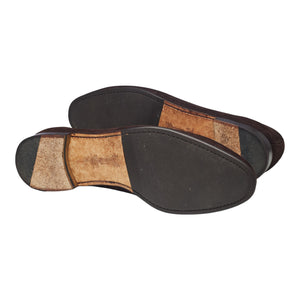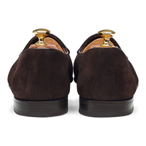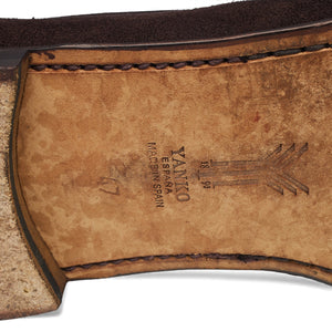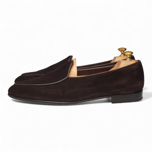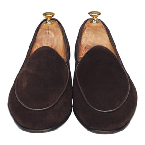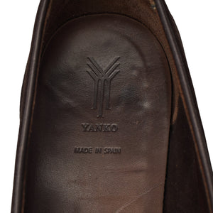 Yanko '5083' classic Belgian loafer in dark brown suede. In excellent used condition, showing minor signs of wear.