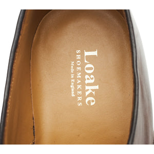 Loake 'Gable' plain toe derby in dark brown calf. In excellent used condition, showing light creasing across the vamps.