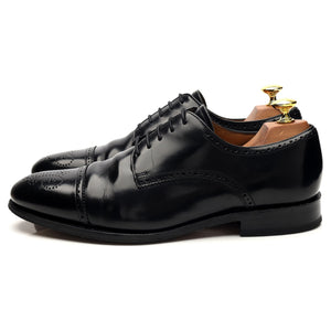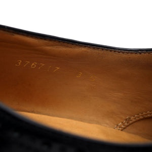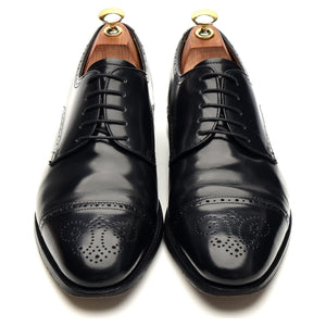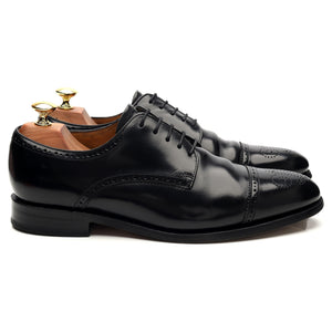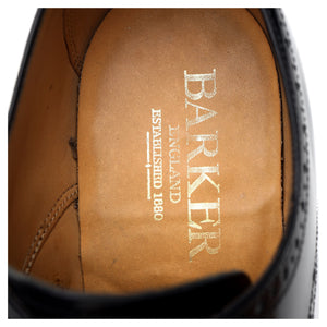 Derby Barker « 376717 » à bout rapporté, avec brogues, en cuir de veau poli noir. En excellent état d'usage, présentant de légères traces d'usure et de légers plis sur l'empeigne.