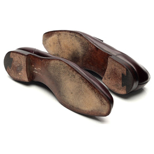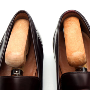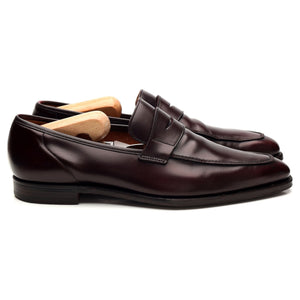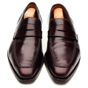 Mocassins penny « George » non doublés de George Cleverley en cuir de veau bordeaux. En excellent état d'usage, présentant de légères traces d'usure et de légers plis sur l'empeigne.