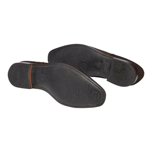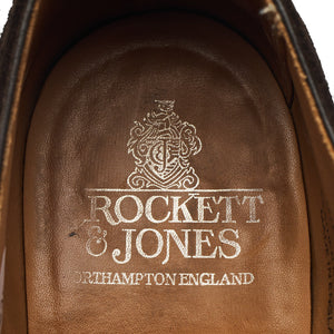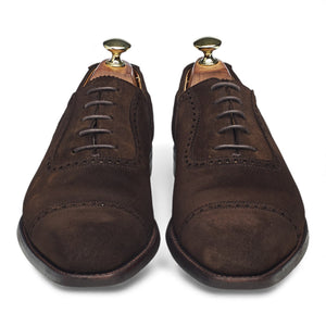 Crockett & Jones 'Westbourne' u-throat oxford, with broguing, in dark brown suede. In very good used condition, showing moderate signs of wear.