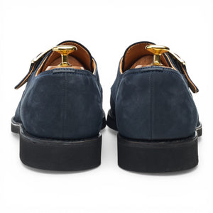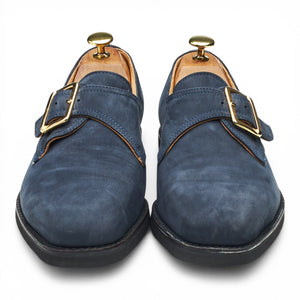 Church's Vintage 2000 single buckle monk strap in navy blue nubuck. In excellent used condition, showing minor signs of wear.