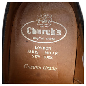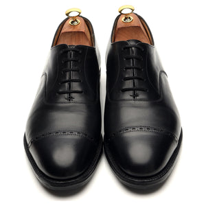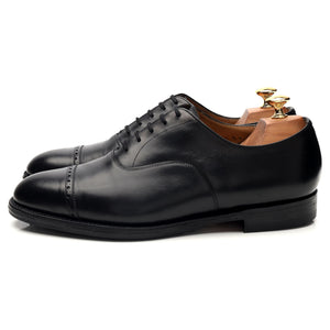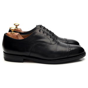 Church's 'Barcroft' cap toe oxford, with broguing, in black calf. In excellent used condition, showing minor signs of wear.