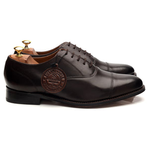 Jones Bootmakers cap toe oxford in dark brown calf.