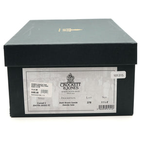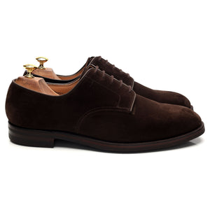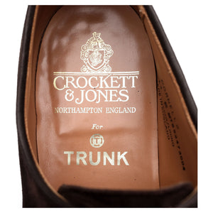 Crockett & Jones manufactured for Trunk 'Cornell 2' plain toe derby in dark brown repello suede. In excellent condition.