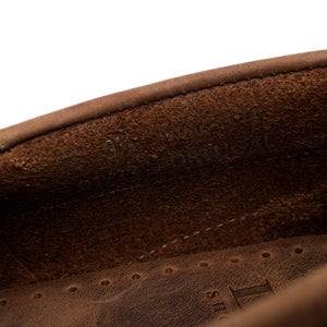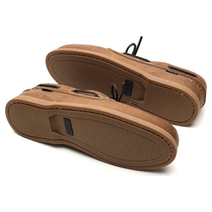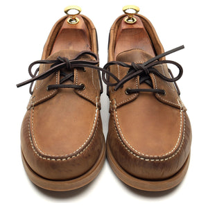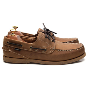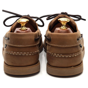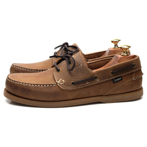 Loake 'Lymington' boat shoes in brown oiled nubuck leather. In excellent used condition, showing minor signs of wear.