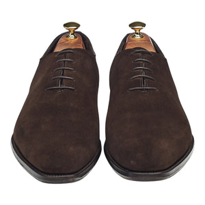 George Cleverley 'Merlin' wholecut oxford in dark brown suede. In excellent used condition, showing minor signs of wear.