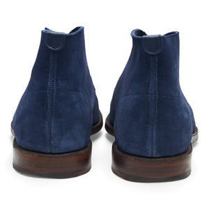 Cheaney 'Dexter' unlined chukka boot in blue suede. In excellent used condition, showing minor signs of wear.