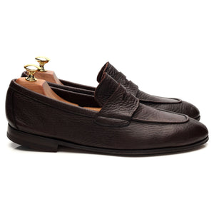Henderson unlined penny loafers in dark brown soft grain calf. In excellent used condition, showing minor signs of wear.